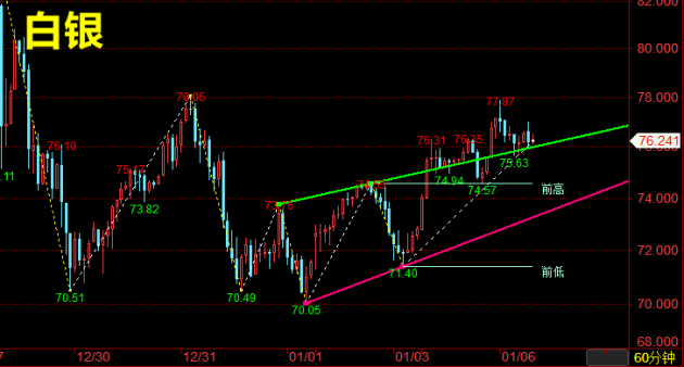 白银方面:伦敦银长线继续看涨100美元,2025最后几天的大跌只是调整,目前调整最低70美元大关,这里依旧是强支撑。今天白银开盘大涨最高至76.35一线回落,这里已经构成日内短期阻力,重点依然是78美元区域强阻力,然后就是80.5-81美元和历史新高。日内短期支撑73.5-73区域,强支撑依旧是70美元。目前来看,白银在70美元以上时间换空间的可能性越来越大;下方的66-67以及60-62中长线布局点做备选。